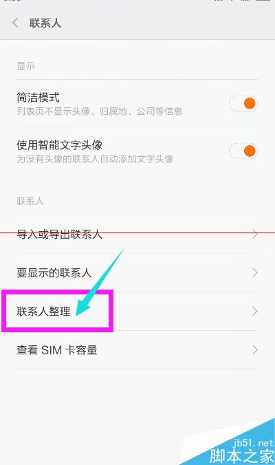 3、点击打开(联系人)这个选项,可以找到(联系人整理)。