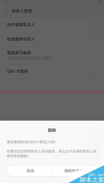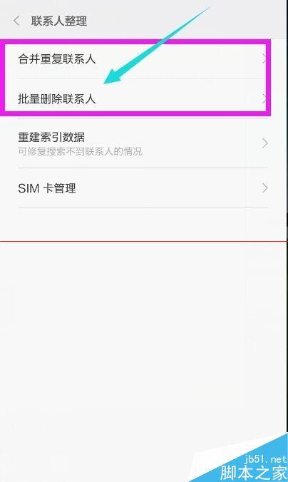 4、点击打开(联系人管理),发现有(合并重复联系人)和(批量删除联系人)两个选项。