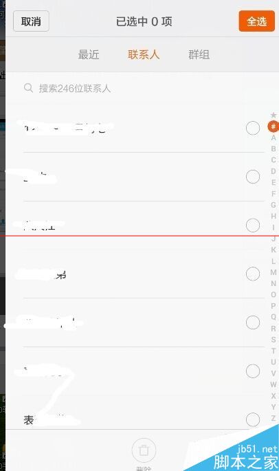 9、这个就完成了这个批量删除联系人啦,这样就不用你一个一个的去删除,是不是很方便,也很简单,省了不少时间呢。