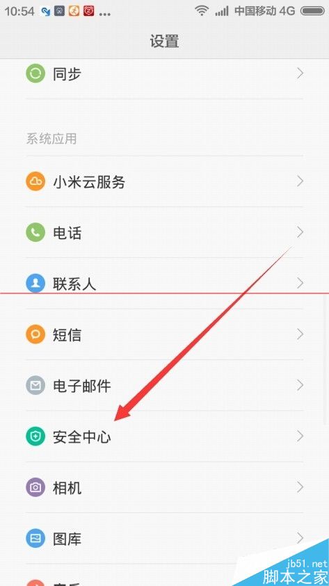 2、在设置界面中,向下滑动屏幕,直到找到安全中心菜单项,点击该菜单项进入到安全中心设置界面。