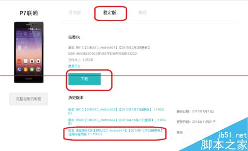 请提前到emui网站(http://www.emui.com/plugin.php?id=hwdownload)上下载对应手机的软件版本。下面以P7联通为例查找版本(第三张图中有EMUI3.0和EMUI2.3的最新版本):