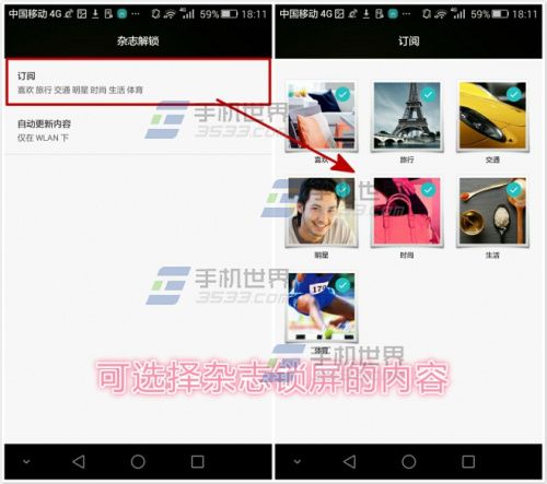 华为G7杂志锁怎么设置订阅内容?每个人都有自己喜欢看的杂志,那么华为G7自带的杂志锁要怎么设置订阅内容呢?下面手机世界小编给大家带来了详细的操作图解,希望对大家有所帮助。