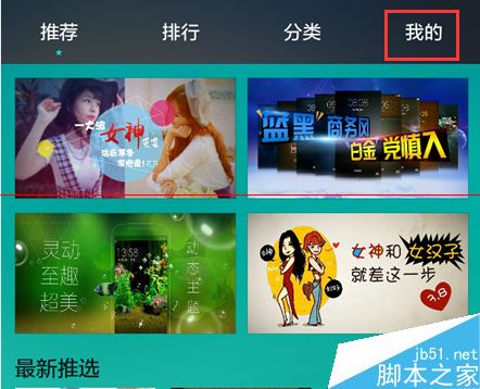 2、在主题app中,最上方有三个分类,找到最后一项【我的】分类,点击打开