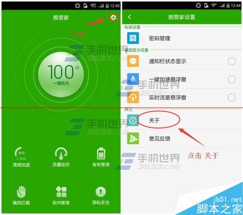 1)打开大神F1极速版的【酷管家】点击【设置】,点击【关于】。(如下图)