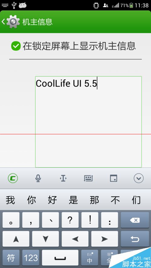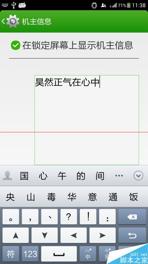 5、输入完成后,关闭机主信息的对话框,即可。需要注意的是我们输入的文字不要太多,太多了的话,显得锁屏界面不是很美观。