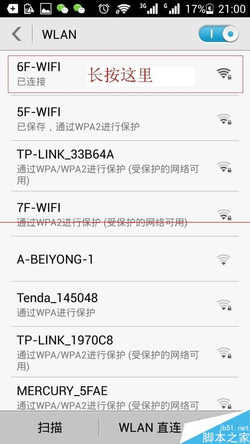 2、在我们连接的WiFi名称上长按。