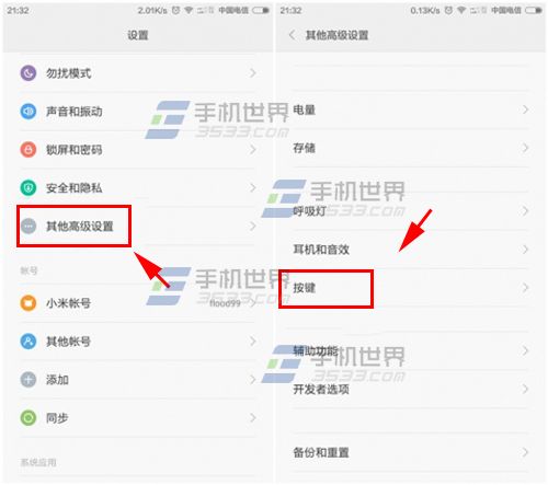 1)打开小米Note手机【设置】点击【其他高级设置】,点击【按键】。(如下图)
