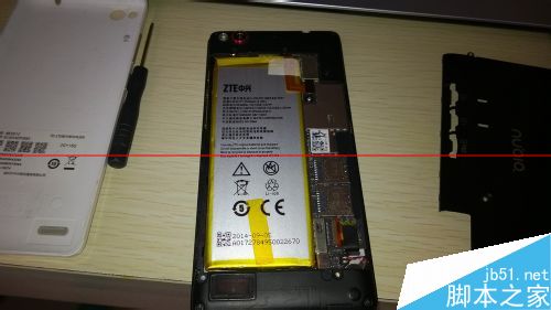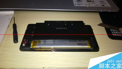然后其实就是一个拆卸过程,将电池后盖金属保护盖上的螺丝钉拧下来,这里要注意,只需要将背部五个拆下来就行,不要拆到最下面或最上面的两个,还有一个是隐藏在红色盖片下面。