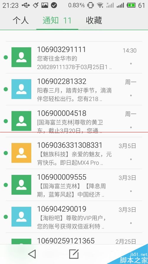 6、这个时候你可以发现,我所有的快递签收短信都在这里。