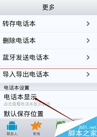 3、在更多选项卡界面上,我们用手向下滑动找到电话本设置,然后点击电话本显示,进入查看电话本显示状态,如下图所示。