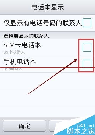 4、在电话本显示界面上,我们就可以看到电话本里的联系人不显示的原因了,因为我们没有把要显示的联系人勾选上,如下图所示。