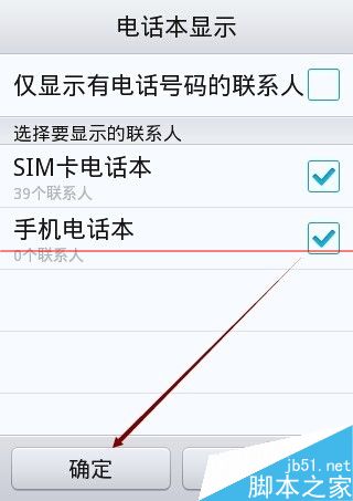 5、将SIM卡电话本和手机电话本都勾选上,然后点击下方的确定,如下图所示。