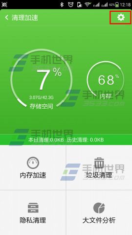 1)打开大神F1极速版自带的【酷管家】点击【清理加速】,点击右上角的【设置】按钮。(如下图)