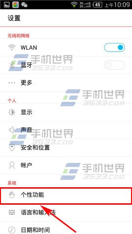 1)打开努比亚Z9mini【设置】,点击【个性功能】。(如下图)