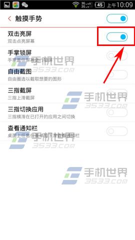 2)选择【触摸手势】,将【双击亮屏】激活即可。(如下图)