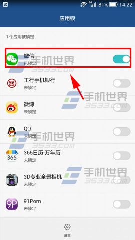 2)设置应用锁【密码】,将需要加锁的应用激活即可。(如下图)