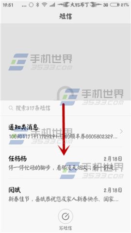 1)进入小米Note手机【短信】界面,保持下拉状态,直到弹出【私密设置】。(如下图)