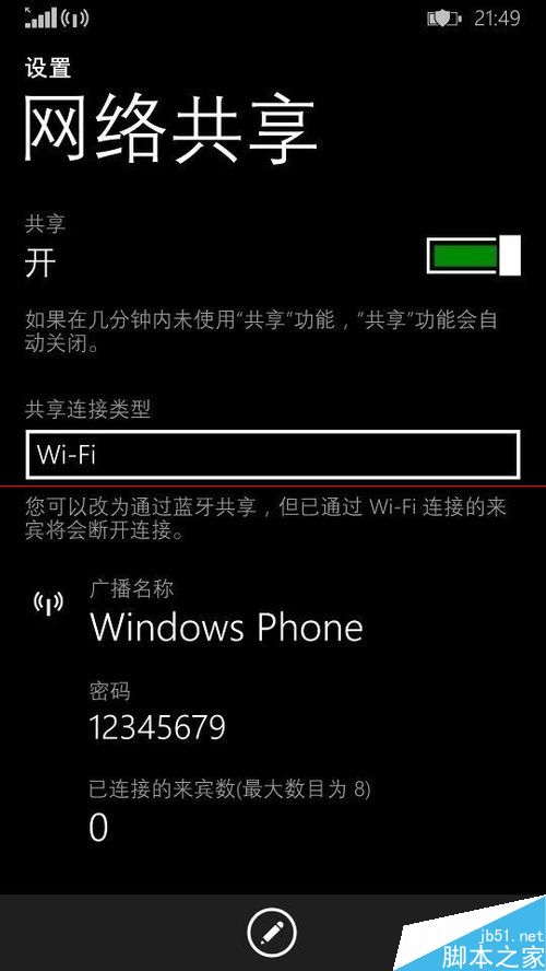 4、修改完成,我们可以利用我们共享的新网络了,共享网络最多运行8个人用。
