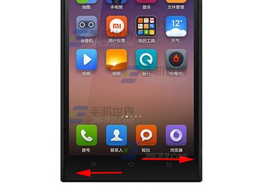 1)在亮屏状态下,滑动手指从小米3【home】滑动至【返回键】或【任务键】任意一边,即可进入单手模式。关闭方法与打开方法相同。(如下图)