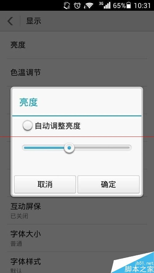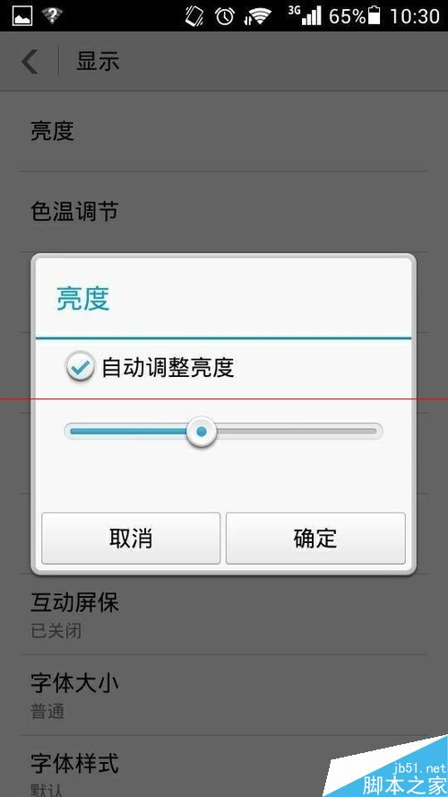 6、将自动调节亮度之前的勾去掉,选择确定后,手机就不会出现忽明忽暗的现象了。