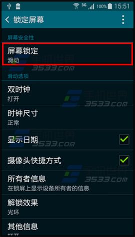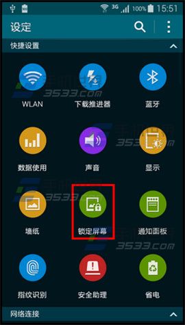 1)打开三星Alpha的手机【设定】,点击【锁定屏幕】。(如下图)
