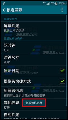 2)选择【屏幕锁定】,点击【指纹】。(如下图)