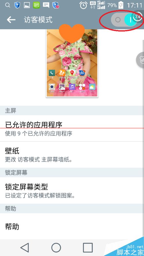 2、点屏幕最右上角的开关,打开"访客模式"这个功能。