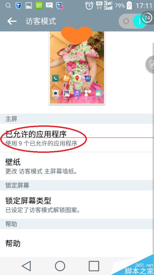 3、接下来我们点“已允许的应用程序”,设置“访客”能够使用的app。勾选完app后,点左上角的<-返回。