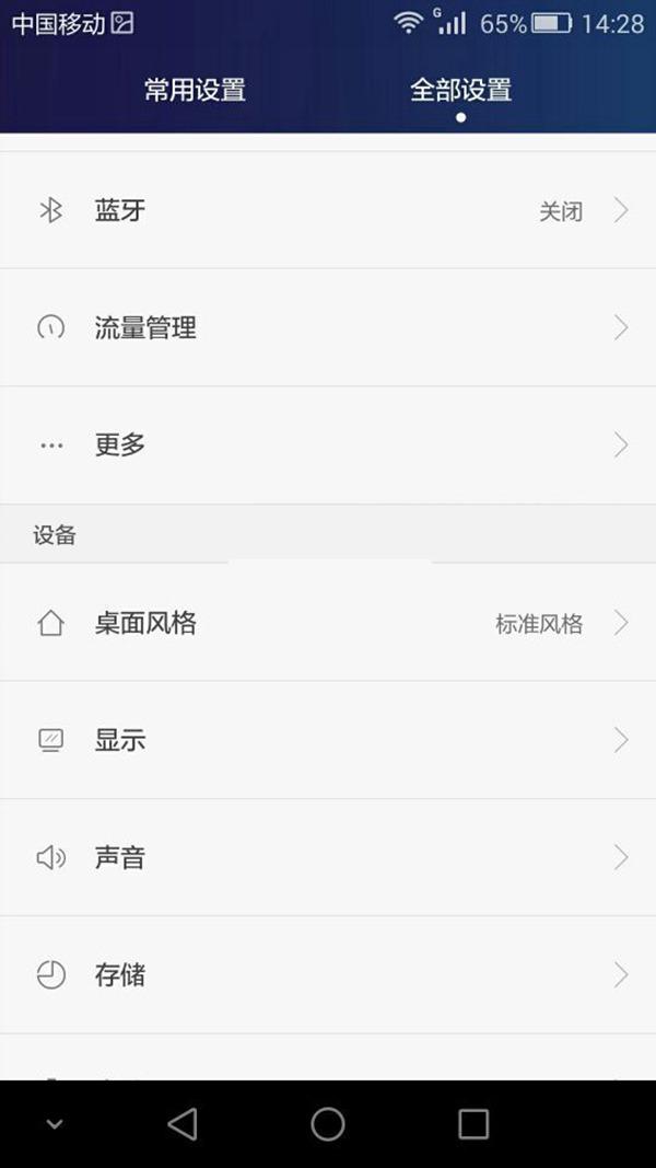 2,进入荣耀6 Plus设置之后,我们再切换到顶部的【全部设置】,如下图所示: