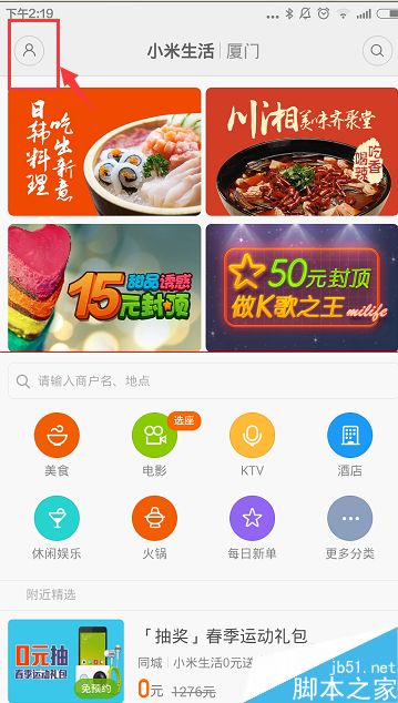 2、进入应用以后默认到本地生活界面,我们在顶部的头像按钮处进行点击