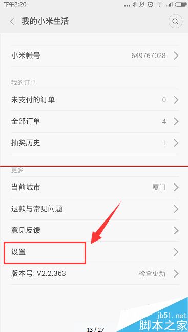 3、进入到我的小米生活页面以后,我们可以看到一个设置栏目,点击设置栏目