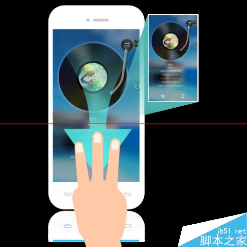 3、手指无需点击手机按键,只需在屏幕的意位置三指向上或向下滑动即可完成屏幕截取操控。