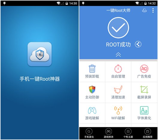 除此之外,如果你是小白用户不会折腾刷机的话,那你还可以使用一键root大师来恢复为未root状态。但如果你手机已经获取了root权限那你就可以享受一些更自由的功能,比如卸载手机预装、管理开机自启动,更换手机字体等深度美化功能。