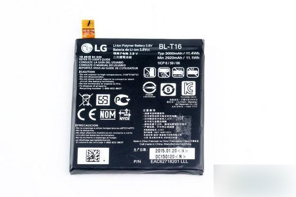 我们先来看看这块电池,来自LG Chem南京的异形电池你用粘胶粘在机身中部的电池仓内不像他的前辈采用的是无痕胶。电池型号为BL-T16的锂聚合物电池拥有最大3000毫安时容量,电芯同样采用LG自家的。