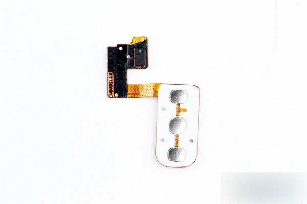 GFlex2的按键软排线与上一代相同,贴在后壳背面,软排线上集成了激光对焦发射器,软排线背面采用金属加强。