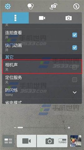 打开华硕飞马手机【相机】点击左上解的【设置齿轮】将【相机声】关闭;或者按【音量减】直至其变为静音。(如下图)