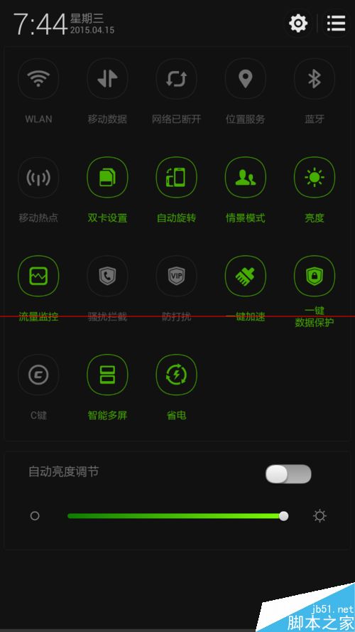 2、在屏幕上端下滑手机界面,出现手机各种功能设置界面。