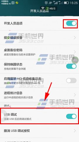 2)返回【全部设置】找到【开发人员选项】将它开启,将【USB调试】开启即可。(如下图)