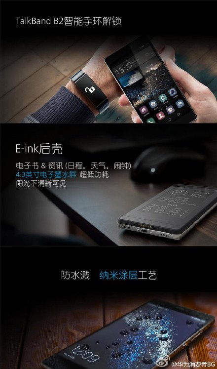 [下午11:11:15] 此外,华为还为P8推出了电子墨水屏保护套,可通过该保护套阅读手机里的电子书。P8声称使用防水溅纳米涂层。