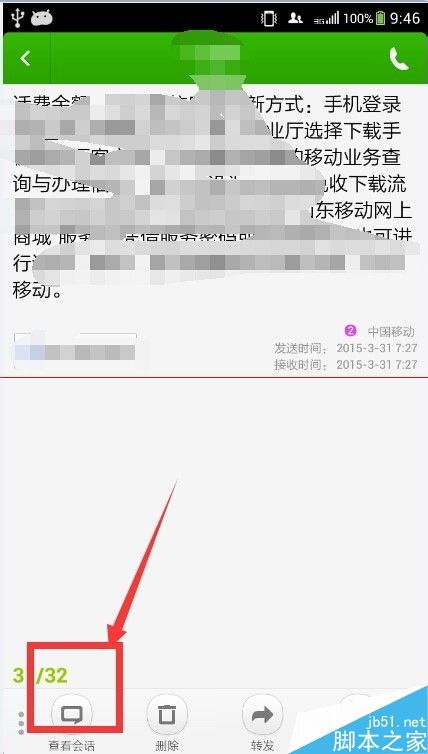 3、短信打开之后,我们点击左下角的“查看会话”功能。