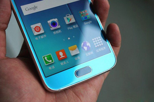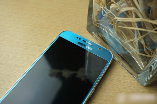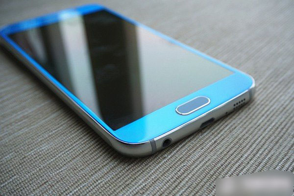 三星Galaxy S6的硬件配置与其他颜色版本S6相同,只是原有基础上为这款“史上最美手机”新增亮蓝色版本。观感上亮蓝色的S6相比黑白色的S6更具视觉冲击感。在以下图片为光线较强环境下拍摄,整体颜色偏浅,实际机身为反光的亮蓝色。(留意下图前置摄像头部分为真实机体颜色)