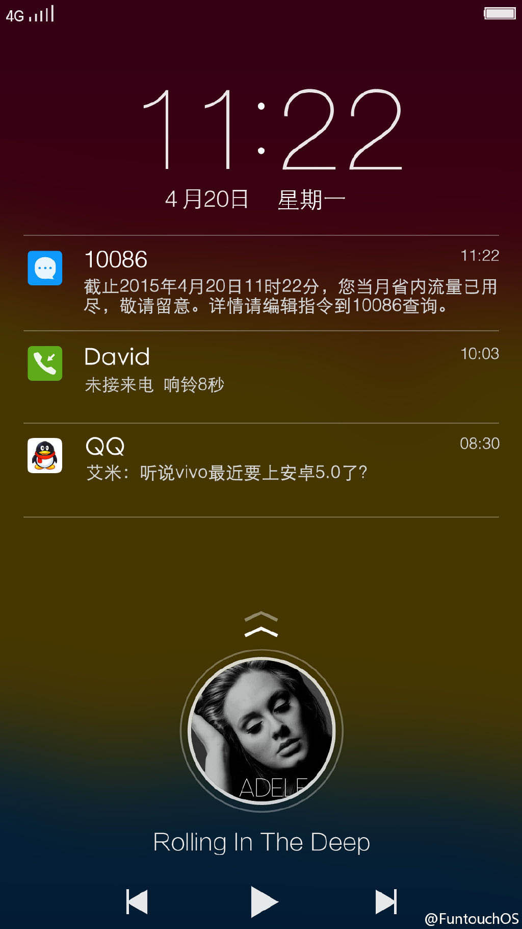 锁屏界面上加入了可以显示信息详细内容的消息通知栏,和iOS非常类似,并且效果看起来也非常唯美,算是国内Android 5.0中优化得最好看的。