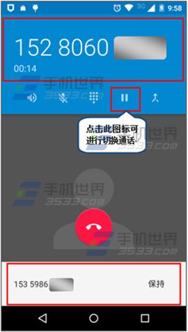 2)拨号成功后点击【暂停】可切换通话。(如下图)