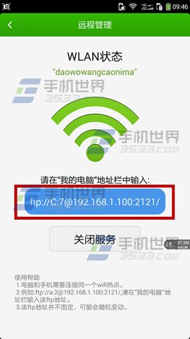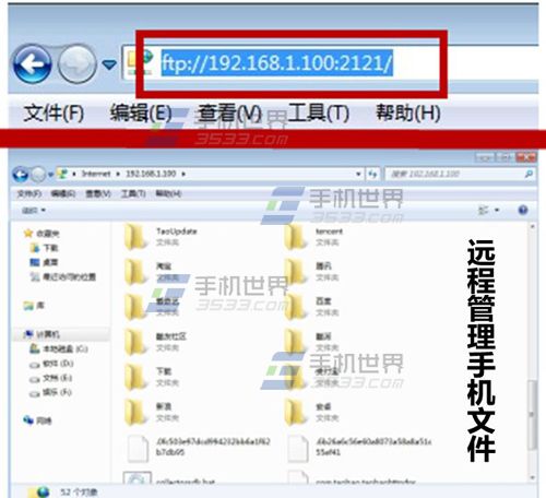 2)在电脑端输入【ftp地址】即可远程管理手机文件。PS:电脑跟手机必须是同一IP段哦。(如下图)