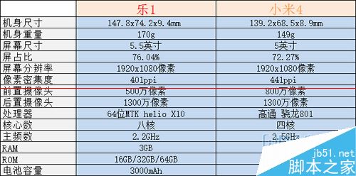 小米4(下)/ 乐1(上)