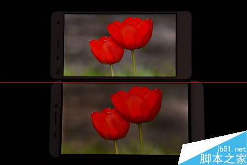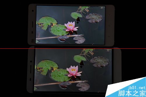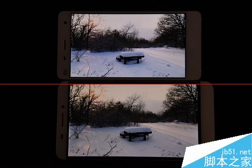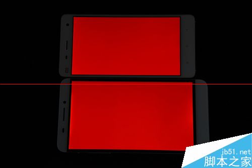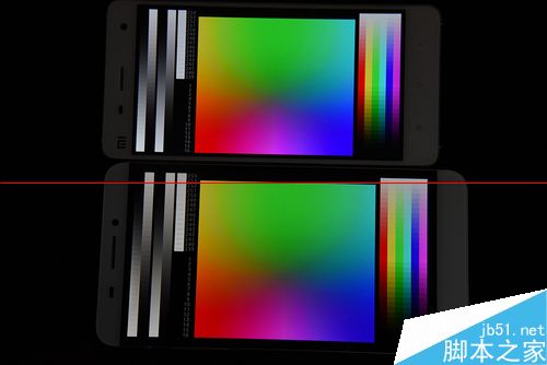 两款手机在三原色测试中成绩都还不错,小米4的屏幕最大亮度明显要比乐1高一些,虽然都没有出现严重的色差。但从中仔细观察还是发现乐1的边框出现了轻微漏光现象,相信这与工程机有着不可分的缘故。