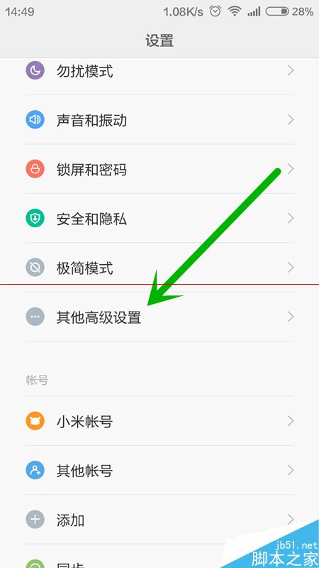 2、在设置下拉菜单中找到其他高级设置选项,点击打开