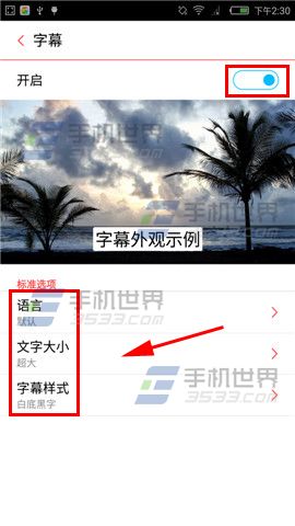 2)进入【字幕】,将该功能开启。我们可以根据自己的需求设置字体大小及【字幕样式】。(如下图)
