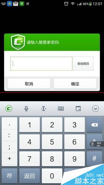 7、再打开程序是,需要输入密码,即酷管家密码。