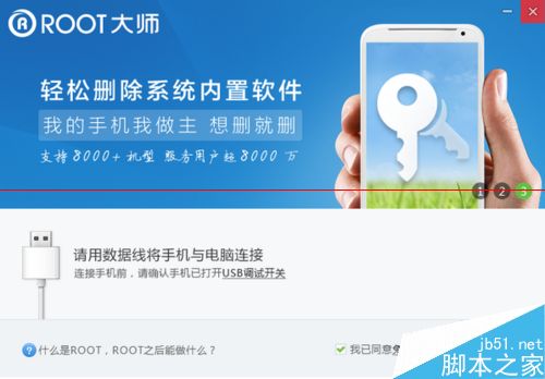 1、打开ROOT大师,等待usb连接成功,如下图所示